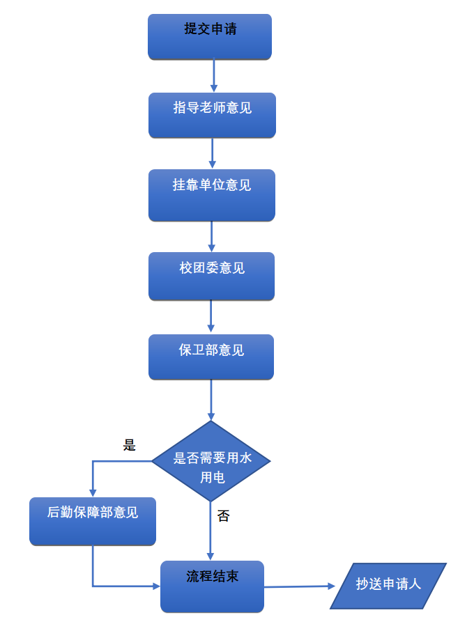 注:校团委宣传部对《场地使用申请表》及《团学集市活动申请表》予以更新。最新版申请表增设宣传物料一栏,需填报内容包括但不限于宣传设计图及所含文字等内容。