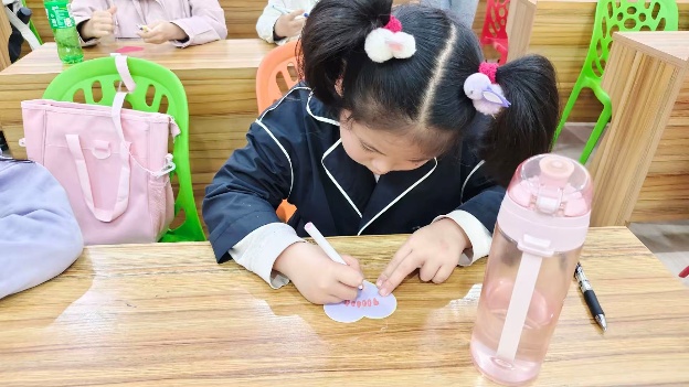 最热闹的当属40分钟买卖实战环节。等价交换游戏中,孩子们仔细核算手中练习币的面值,与同伴反复确认、完成等额兑换,在“你给我5元,我找你2元”的稚嫩对话中直观掌握了货币换算。随后的买卖模拟游戏更是高潮迭起:桌上摆满文具、玩偶、贴纸等小物品,一人扮店主,一人扮顾客,讨价还价声不绝于耳——“这个能便宜点吗?”“3元变2元,成交!”孩子们在真实交易中体会到货币作为价值尺度和流通手段的作用。志愿者全程巡视协助,耐心引导,确保每一位小朋友都沉浸其中,没有人掉队。