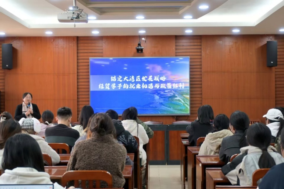 陈琴女士围绕粤港澳大湾区发展战略、自贸区布局及政府服务举措,为同学们深入解读区域发展动态与个人职业规划的紧密联系。