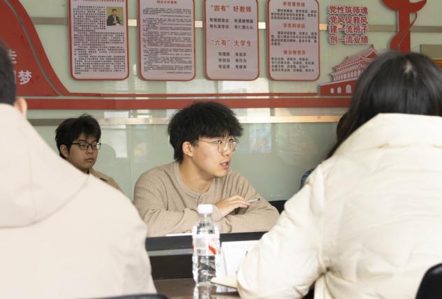 青马班成员刘森进行发言,他提出了作为团支部成员关于团支部建设的看法。第一,将团日活动打造为思想引领的前沿阵地,通过创新形式和空间延伸增强互动与实践;第二,将团日活动作为能力练兵场,推动从被动参与到主动策划的转变;第三,建议支部委员建立固定联络机制,了解同学需求并组织针对性活动。