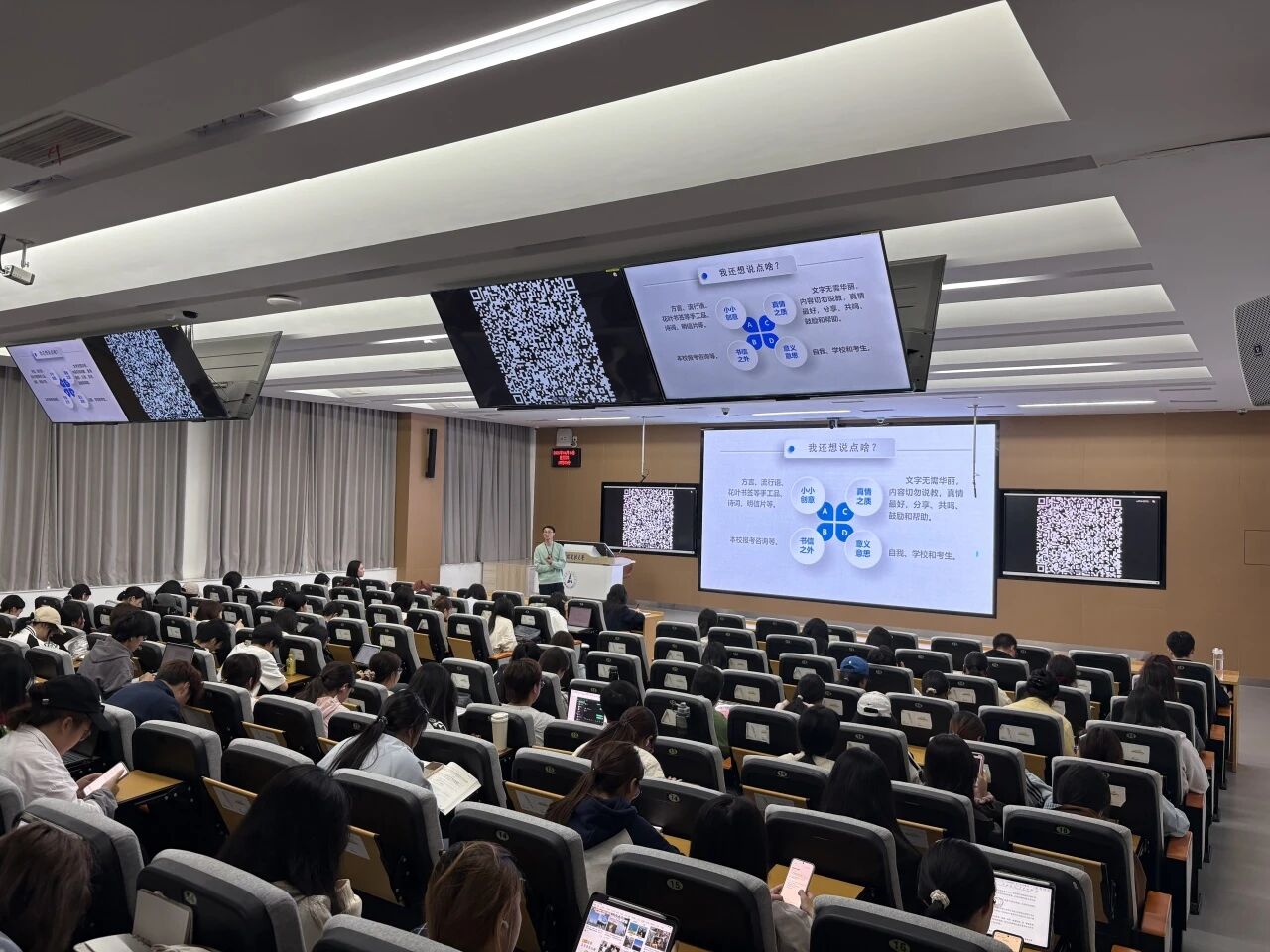 本科生院招生工作办公室杨安琪老师向志愿者们介绍了学校的招生政策,她指出,此次寄信活动对高三学弟学妹而言极为珍贵且意义非凡,能够为他们枯燥的备考生活增添一抹亮色,并叮嘱志愿者们要讲好“自己选择中南财经政法大学的原因”和“自己眼中的中南财经政法大学”这两个故事。两位老师的分享为志愿者们提供了清晰的写作指引。