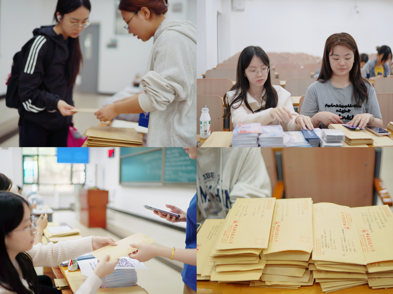 培训结束后,志愿者们认真构思、精心撰写。4月18日下午,收信活动分别在文泰楼101教室和文津楼301教室开展,志愿者们陆续提交了饱含心意的信件,工作人员统一整理、核对,并于4月20日将信件寄往全国500余所高中。
