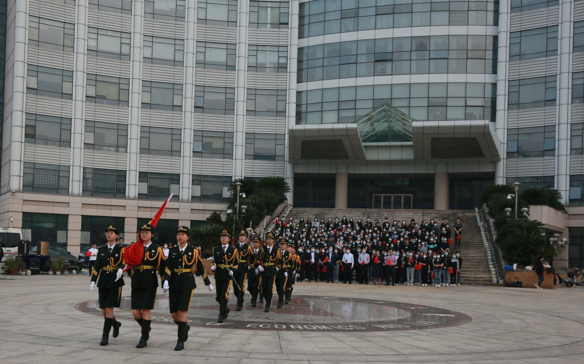 新闻网讯(学生通讯员 吴念永)3月14日,财政税务学院“喜迎二十大、永远跟党走、奋进新征程”主题升旗仪式在南湖校区中原楼广场前举行。校党委常委、副校长申祖武,校党委研究生工作部部长肖翠祥,校党委学生工作部、人民武装部部长余小朋,财政税务学院院长张克中、党委书记袁桂君及学院党委委员、党务秘书、辅导员老师、学生党员和入党积极分子参加了本次活动,财政税务学院党委副书记笪宁主持本次仪式。