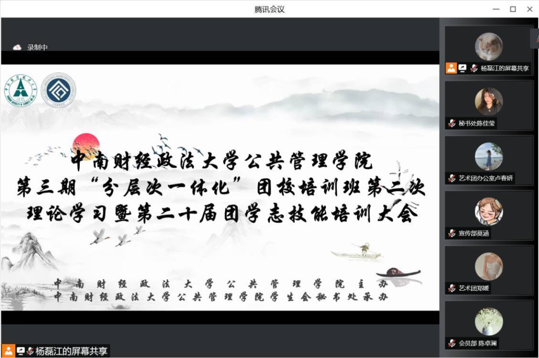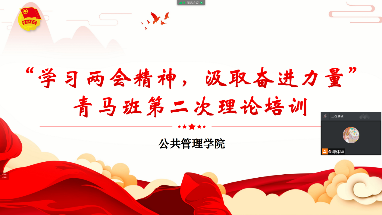 应疫情防控要求,为更好提高公共管理学院团校培训班与青马班理论学习效率,我院第三期“分层次一体化”培训班第二次理论培训会议、第五期青马工程第二次理论培训分别于线上开展。培训主题为“学习两会精神,奋进汲取力量”。