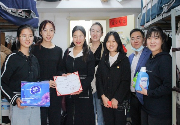 新闻网讯(学生通讯员 胥鑫诺 摄影 胡天仪 吴彦恺)迎建团百年,创文明寝室。4月14日中午12点45分,金融学院党委副书记向敏与学办全体辅导员走访学院20级本科生寝室,为在寝室风采大赛中获奖的寝室颁奖。至此,历时一个月的金融学院“迎百年青年团建,创文明寝室风采”2021-2022学年寝室建设大赛落下帷幕。