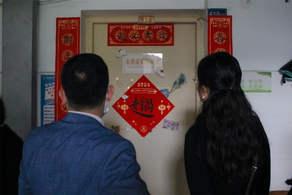 走访过程中,向敏副书记对获奖寝室表示祝贺,希望大家再接再厉,将积极势头延续下去。胡源老师对获奖寝室的整洁与精美布置表达了赞美,并感谢同学们的热情参与、辛勤付出。辅导员代表穆帆老师则指出获奖寝室的成员中不乏国奖获得者、学生工作者,希望大家在班级、年级、学院中起模范带头作用。与此同时,获奖寝室的布置巧思令老师们拍案连连。环七639室将寝室成员专业名称融入对联中,627室则设计了极具虎年特色的“虎福”……这些别具一格的设计,既展示了寝室文化风采的特色,也寄托了寝室成员对美好未来的憧憬,更体现了家的归属感与幸福感。