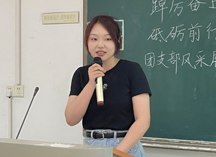 支部风采展示和微团课演讲结束后,评委钱依阳对参赛的团支部的现场展示做出点评。她从内容、主讲人两个方面提出了建议,一是内容应该突出重点和特色,清晰明了具有概括性;二是主讲人要有共情能力,与台下的评委和观众进行互动,更多的引起观众的思考与共鸣。