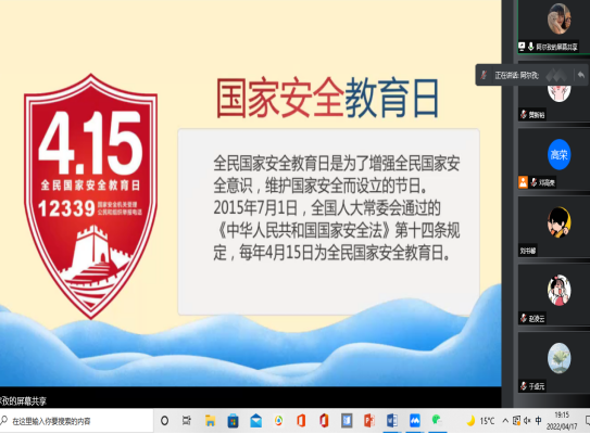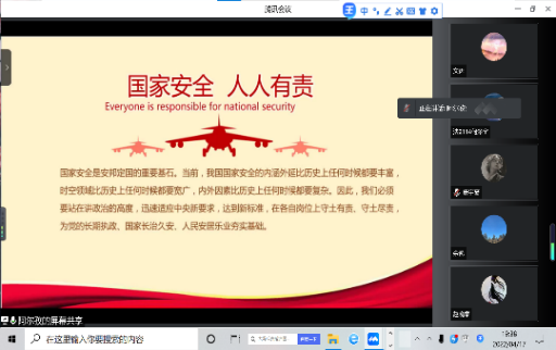 其后,同学们一起在线上观看了2022年国家总体安全日的宣传视频。