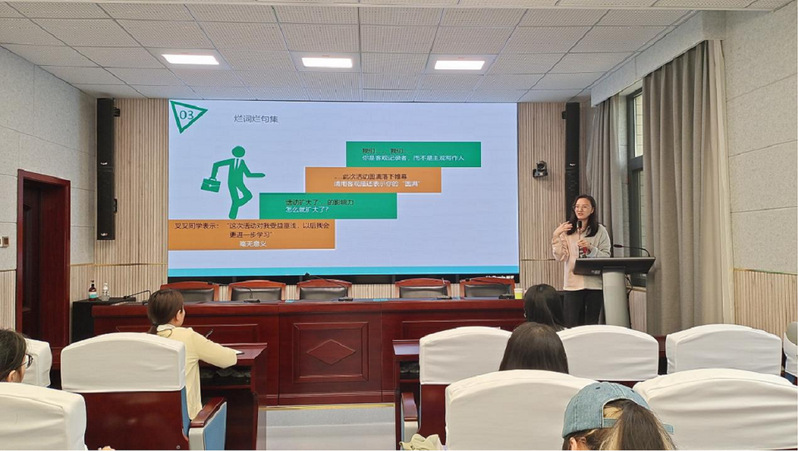 培训会以“新媒体时代的校园传播”为主题展开,崔桢桢老师给宣传骨干们详细讲解了新形势下如何利用新媒体开展校园新闻宣传工作。她从多角度多方面为宣传骨干厘清宣传思路、讲解宣传形式、分析宣传内容、传授宣传技巧。在谈到新闻稿用词时,崔老师将表达活动参与人数多常用的“爆满”与“观众席能容纳900人,活动时连过道都站满了人”作对比,生动地说明如何才能拥有更好的宣传效果。此外,她指出宣传中容易出现的误区以及该如何避免空洞苍白的宣传的解决方法,给宣传骨干成员们上了一堂内容丰富、生动有趣的培训课。