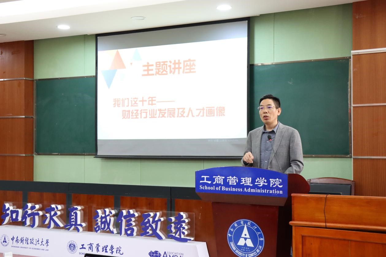 新闻网讯(学生通讯员 吴焱 摄影 张苏琪)为充分发挥校友对青年学生的引领作用,帮助同学们感悟认识党的十八大以来经济社会发展成就,熟悉财经行业并探索在当中的职业发展机会,工商管理学院第十八期校友导航之“我们这十年——财经行业发展及人才画像”讲座于4月20日14:30在南湖校区文泉北506会议室顺利举办,讲座以B站视频直播的方式同步进行。本次讲座有幸邀请到工商管理学院贸经88级校友,现任湖北省粮油(集团)有限责任公司董事、投资总监刘权先生担任主讲人。工商管理学院党委李芳副书记、2020级党支部书记林杰老师、2020级年级主任刘念老师出席本次讲座。