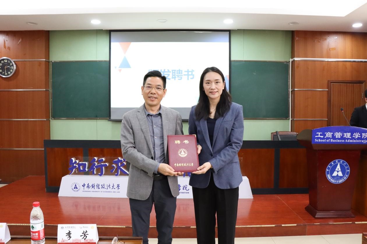 在正式讲座开始之前,院党委李芳副书记为刘权先生颁发校客座教授聘书。