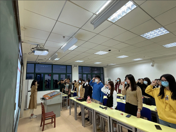 首先,团支书张金燕同学视频来引入话题,向同学们介绍了了解国家安全问题研究的发展历程、我国总体国家安全体系、新形势下国家安全风险举例,并宣布活动正式开始。其次,由张金燕同学带领全班同学高唱团歌,激昂的青春旋律回荡在同学们的脑海之中,充盈着整个教室。活动第三项,全体团员重温入团誓词。紧接着活动进入第四个环节,由张金燕同学向同学们讲解国家安全的涵义和重要意义,她指出,作为当代青年,不仅要重视国家军事政治方面的安全,也应该重视国家文化安全。坚持马克思主义,坚持中国特色社会主义思想,学习中华优秀传统文化,取其精华去其糟粕、合理吸收外国优秀文化和思想,只有用马克思主义、社会主义武装青年头脑,坚定其理想信念,国家的安全才能得到保障。通过张金燕同学的相关讲解,同学们进一步学习了国家安全知识,坚定了跟党走、携手奋进新征程,为夺取全面建设社会主义现代化国家新胜利、实现第二个百年奋斗目标,贡献青春的力量的初心与使命!