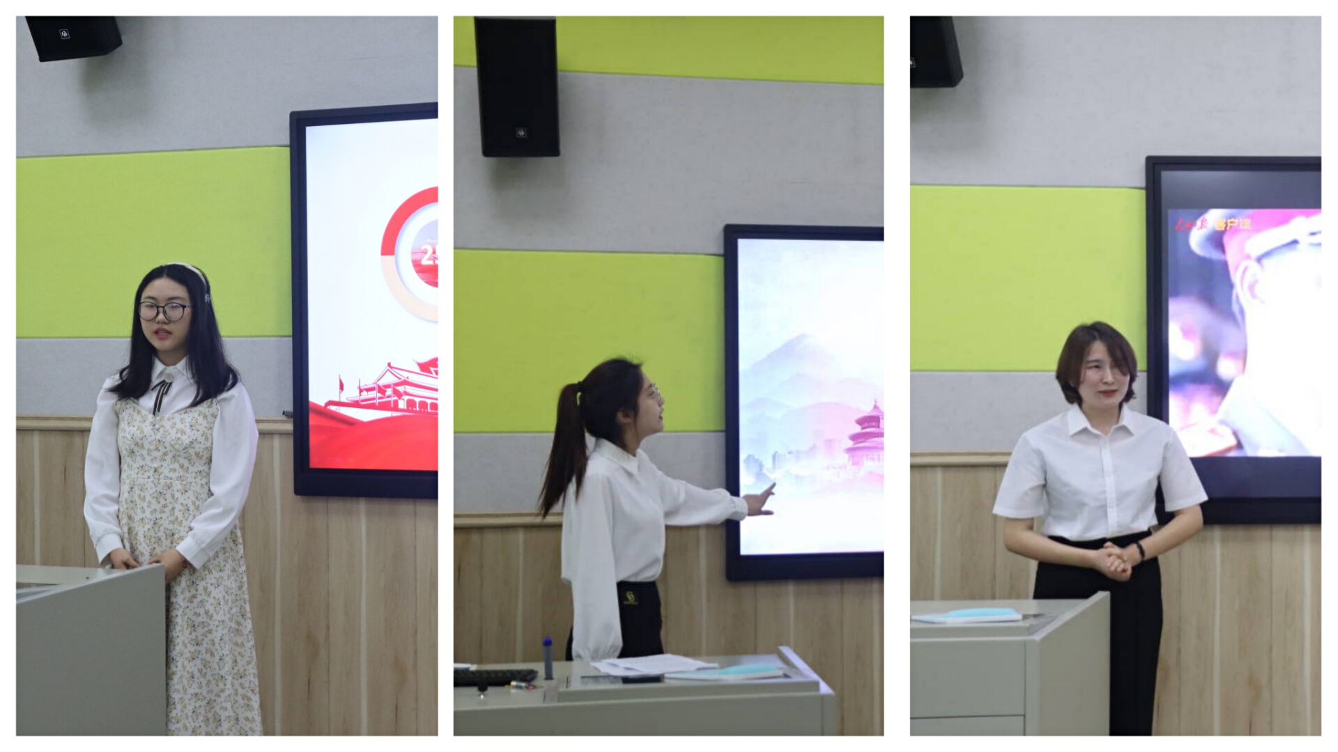 王小怡同学通过介绍我校校史,展现了我校青年才干在建设母校、建设祖国中的优秀品质与责任担当;王玥同学从团干部团员应当怎样作为等方面讲述了要如何深刻学习并宣传十九大精神,以此迎接党的二十大胜利召开;张惠芳同学带领大家一同走进中共七大,了解它为什么被誉为新民主主义革命时期最重要、最成功的一次代表大会。