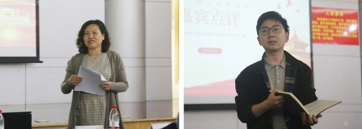 所有选手演讲完毕后,徐菊香老师和舒鑫才老师进行点评。徐菊香老师对选手们的表现和勇气给予了充分肯定,她从选题选材、场感把控、情感色彩、眼神互动、即兴技巧等方面对每位选手进行细致点评,希望同学们自信表达,紧扣主题,合理运用支撑素材和演说技巧来阐述自己的观点。舒鑫才老师认为选手们的演讲情感饱满、选材丰富,他从如何破题、演讲与叙事的方式方法,如何结合自身感受展现主题思想等方面给予选手们建议和启发。