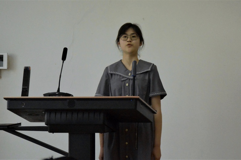 大会第二项,学生代表陈可忆同学发言。在发言中,她介绍了青年马克思主义者培训班的意义与重要性,呼吁青年认真学习青马班课程,将学习成果运用到实践当中,为国家为社会奉献自己的青春力量。