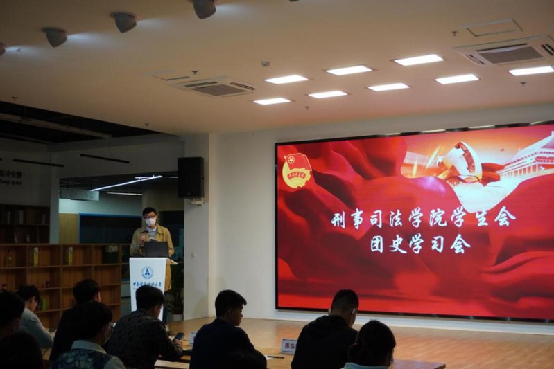 新闻网讯(学生记者 金雯星 喻宇轩 齐敬凯 王麒聿)4月30日上午9时,为庆祝中国青年团成立一百周年,引导广大青年团员感悟党中央对青年人殷切希望,坚定理想信念,勇担时代使命,刑事司法学院学生会组织以“喜迎二十大,永远跟党走,奋进新征程”为主题的团史专题学习会暨学生会组织建设评议会,共同学习共青团百年奋斗史,并对我院学生会本学年工作进行总结回顾。此次活动在大学生素质教育中心路演厅举行,会议由刑事司法学院学生会秘书处负责人王易主持,学生会主席团成员杨东林、陈泓昊、黄晓毅以及研究生支教团成员刘雨辰、严宇飞出席会议,学生会全体成员、各年级代表到场参会学习与工作评议。