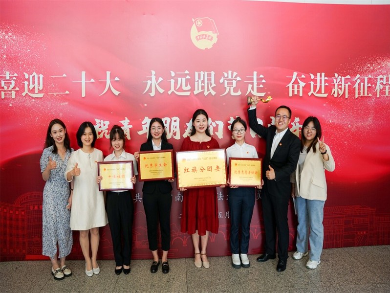 在学校2021-2022学年共青团工作“五四”综合表彰中,金融学院分团委荣获“红旗分团委”,金融学院学生会荣获“优秀学生会”,金融学院志愿者协会荣获“优秀志愿者协会”,国际金融管理协会荣获“十佳社团”,模拟联合国协会提名“十佳社团”;金计2001团支部、金计2101团支部、金融2103团支部、金融2002团支部、金融2104团支部、金融1902团支部荣获“红旗团支部”。