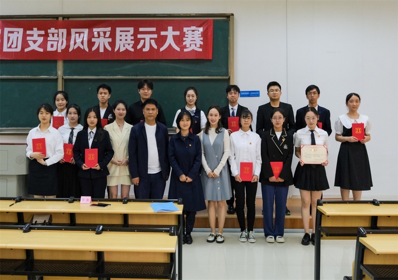 最后,主持人公布比赛得分与获奖名单,金融2103团支部荣获一等奖,金融2102、金融2101、金融2104团支部获得二等奖,金融2108、CFA2101、金融2106、国金2101、管工2103团支部获得三等奖,金计2101、金融2105、金融2107、管工2102、管工2101团支部获得优胜奖。各获奖支部上台领奖并与评委嘉宾合影留念。