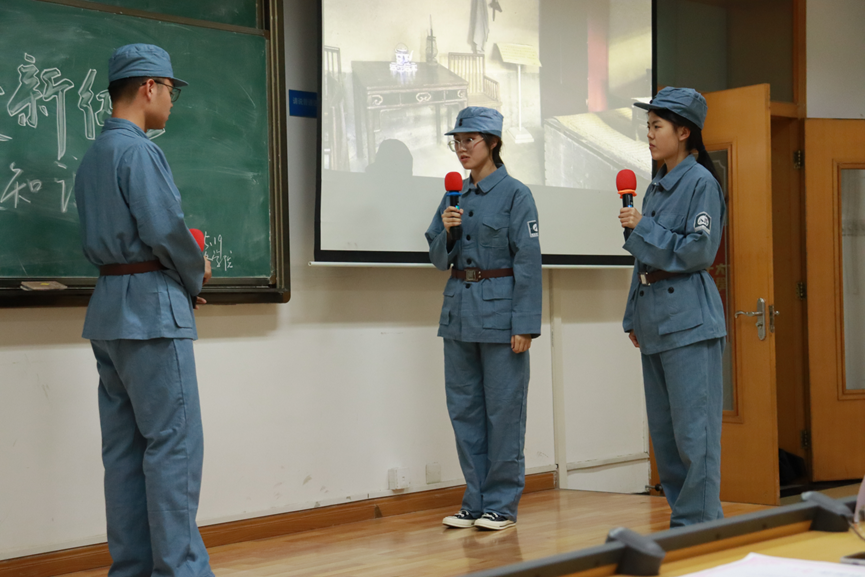 闯过重重难关,比赛进入到最后环节——黄金时刻。在这一环节,每支队伍将根据之前抽到的主题进行五分钟话剧演绎,表演形式不限。每一支队伍的演绎都十分生动,财税2101班的《一国两制》,重现了中英谈判的情景,表达了中国坚决收回香港的决心,也表示中国站起来了;财税2103班的《恢复高考》,表明高考的恢复让中国的人才有了出路,让中国的科技文化强起来了;财税2104班《延安整风》,真实地演绎了延安风气的整顿,让中国共产党坚持了我党是纯洁的敢于自我批评的党、是永葆青春活力的党。每一支队伍的演绎都十分生动,选手们将灵魂注入人物,将我国曲折向上的发展呈现了出来。