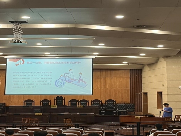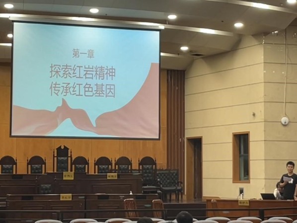 活动第三项,由公安2105团支部书记胡艺馨为大家总体介绍本年级的三个优秀社会实践项目代表及社会实践取得的丰硕成果。并邀请朱芷贤同学、张益凯同学及吴思扬同学代表本小组汇报了主题分别为“探索红岩精神,传承红色基因”“快递最后一公里消费者自主选择及权益保护” 及“寻湘水红色底蕴,忆伟人峥嵘岁月”社会实践项目。