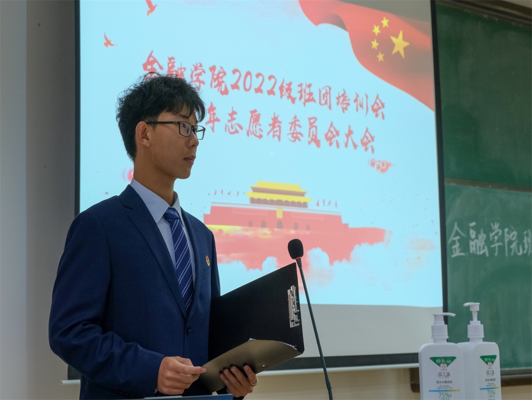 会议第五项,志愿者协会各代表介绍讲解。首先青委会负责人陈善越介绍志愿汇的使用方法和学院开展的一系列志愿活动,希望更多金融学子为社会公益作出自己的努力。接着青栀服务队队长李雨婕、予爱心行服务队队长贵欣怡、初曦服务队队长陈慧琼分别介绍了各服务队的职能和服务对象,体现了金融志协“大爱微行”的宗旨。最后优秀志愿者代表陈星舟分享了自己的志愿服务经历,并呼吁更多同学加入志愿活动,传递爱心与温暖。