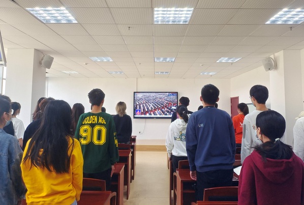 上午10时,中国共产党第二十次全国代表大会在北京人民大会堂开幕。跟随直播,全体同学庄严合唱国歌,并以崇敬的心情向已故老一辈无产阶级革命家与先烈们默哀。