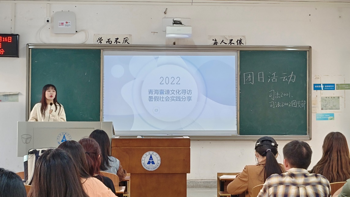 活动第三项,我们采用分享会的形式邀请了司法2001团支部的张婷婷同学分享她暑期精彩的社会实践。张婷婷同学在暑期参加了主题为“青海省玉树藏族自治州囊谦县康巴文化发展现状”的返乡大学生社会实践项目,通过她的分享,现场的团员领略了囊谦县的风土人情,了解了囊谦县的非物质文化遗产——藏族舞蹈“卓根玛”,也了解了当地的扶贫事业——藏族民族特色扶贫工业产业园,该工业产业园不仅让藏香、囊谦黑陶、藏衣、青稞酒等藏族传统文化得以发扬与延续,更在扶贫工作中起到重要作用,将传统文化与经济发展相结合,帮助当地贫困户逐步实现脱贫,这些实例说明党的十八大以来,以习近平同志为核心的党中央把脱贫攻坚摆在治国理政的突出位置,把脱贫攻坚作为全面建成小康社会的底线任务,切实完成了脱贫攻坚任务。