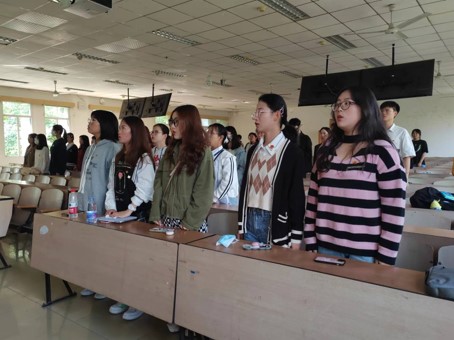 大会开始后,同学们跟随大会议程,全体起立齐唱国歌并为已故老一辈无产阶级革命家和革命先烈默哀,紧接着同学们认真学习习近平总书记在党的二十大开幕会上作的报告。