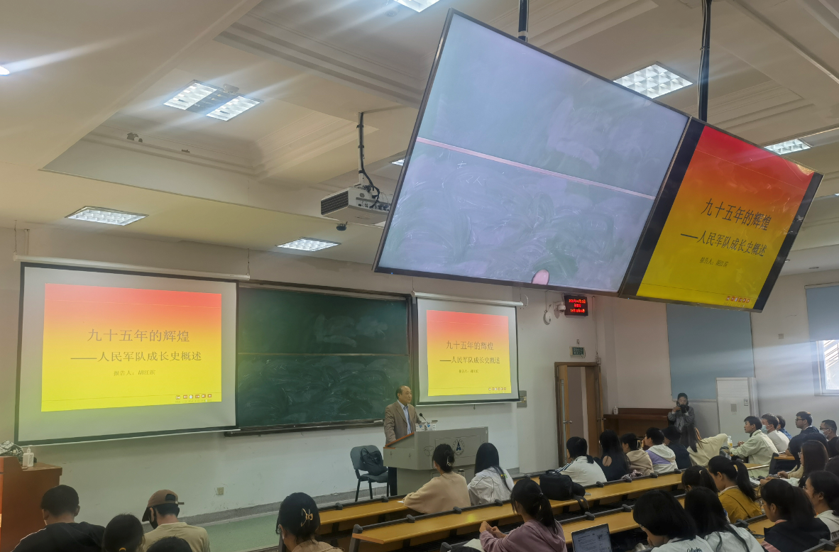 胡江滨教授从“毛泽东同志缔造了人民军队”“我们的原则是党指挥枪”“人民军队战无不胜”“强军兴军看今朝”四个方面讲述了自1927年8月1日南昌起义以来,由中国共产党领导的人民军队光荣且艰难的建立、发展、壮大的历史过程,在理想信念的指引下,人民军队坚守了正确的政治方向,凝聚了革命事业必将胜利的强大力量。