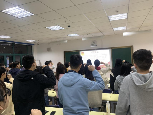 最后,由2021级团支书张金燕同学带领大家一起重温入团誓词,掷地有声的誓言在教室回响,烙印在每一位同学的心中。
