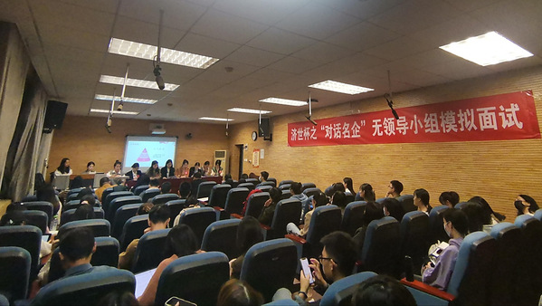新闻网讯{学生通讯员 向承星)10月20日晚,由中南财经政法大学就业指导中心主办,马克思主义学院承办,公共管理学院、法学院协办的圆梦职场,扬帆启航,济世杯系列活动之“对话名企”——无领导小组模拟面试在文沛楼409会议室举办。此次活动特邀国家高级人力资源管理师、湖北省人力资源行业协会副会长陈清清老师,中南财经政法大学创业学院副院长、湖北省创业与就业研究中心主任助理喻良涛老师,法学院研究生辅导员刘洁老师担任评委。
