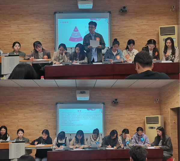 此次比赛共由24位选手报名参加,分为四个部分。第一部分为无领导小组模拟面试环节。首先,参赛选手根据比赛规则和章程被分为三组,并以小组为单位进行个人陈述、自由讨论以及现场总结。随后,比赛进入到简历评比环节,评委老师们针对参赛选手的求职简历评选出“最佳简历制作奖”。