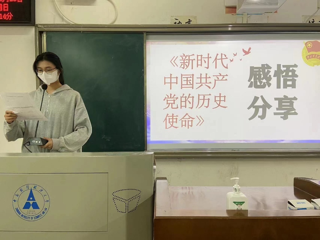 活动第二项,学习贯彻重要思想,分享感悟共谱新章。支部成员王昕宸、江彦莹学习习近平总书记在《求是》上发表的重要文章《新时代中国共产党的历史使命》并上台分享学习感悟,王昕宸呼吁全体成员要将文章所蕴含的内涵与精神内化于心、外化于行,奋进新征程,建功新时代。
