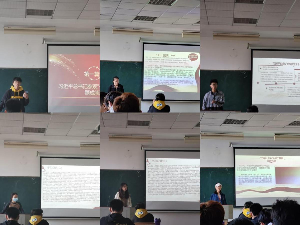 活动第二项,支部成员交流学习心得,感受青年时代使命。团支部代表各自上台宣讲《新时代中国共产党的历史使命》的学习心得。“今天,我们比历史上任何时期都更接近、更有信心和能力实现中华民族伟大复兴的目标”是大家共同的感受。接着支部成员黄静慧向大家介绍了关于国庆节的相关知识。通过她的介绍,支部成员们对国庆节的由来和中国国庆节的历年的阅兵典礼有了更深的理解。