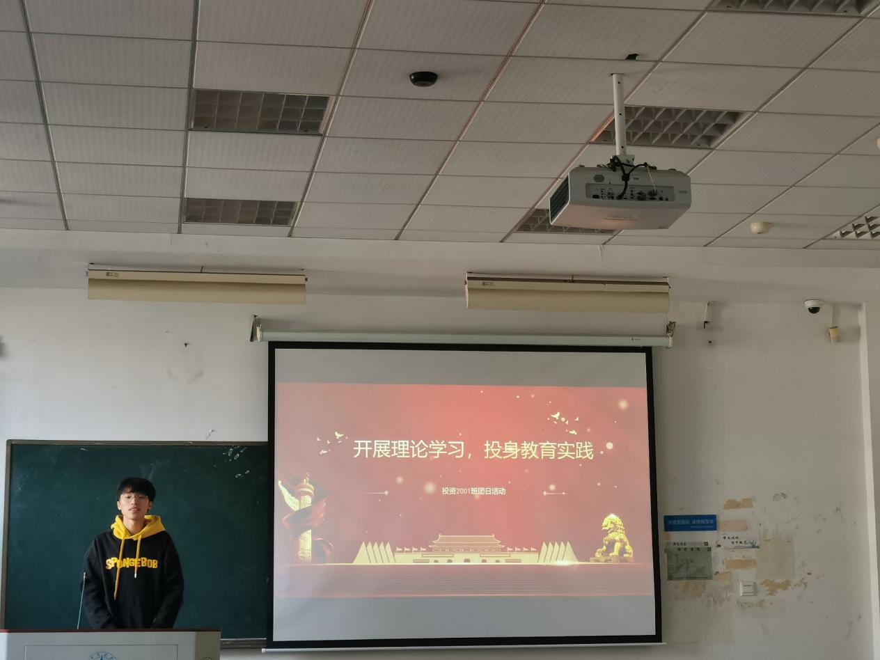 新闻网讯(学生通讯员 陈琳)为加强团支部思想建设,推动团支部后续活动开展,引导全体成员学习新思想、把握新动态,10月18日,投资2001团支部在文泰309教室开展了以“开展理论学习,投身教育实践”为主题的团日活动。