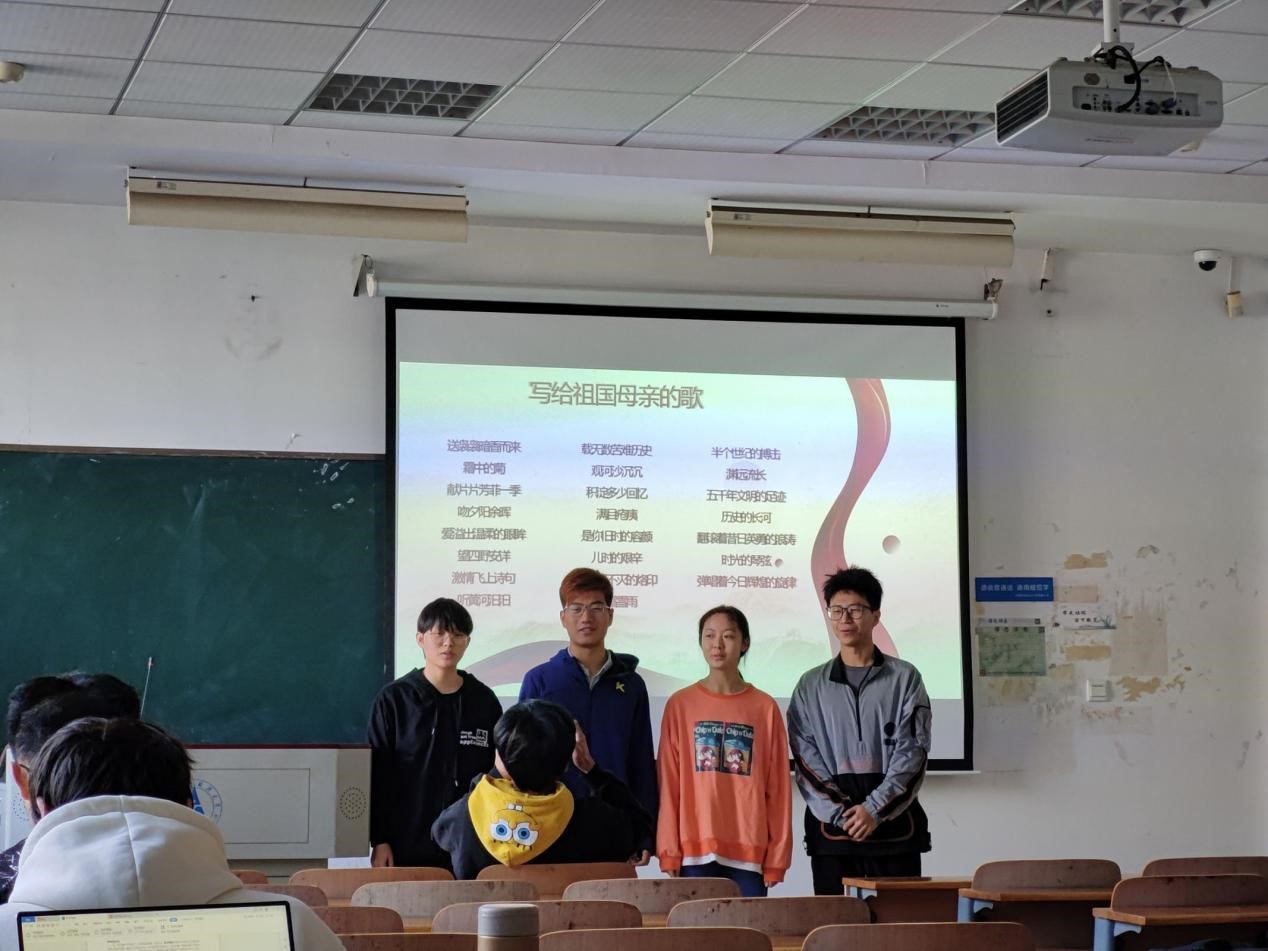 活动第三项,支部成员代表演讲朗诵,增强青年壮志雄心。投资2001团支部举行了“中国这十年”主题演讲比赛。支部成员各抒己见,感受中国这十年以来的飞速发展。随后,支部成员凌佳宁、张莹、熊子魁、肖磊一齐进行了红色爱国现代诗朗诵——“五千年文明的足迹,历史的长河,翻滚着昔日英勇的浪涛”。支部成员们在学习中知国情、晓国之宏图,增强了爱国情感和民族自豪感。