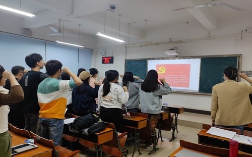 会议伊始,梁淑媛同志清点到会人数,全体到会成员起立,奏唱国歌。随后,李舒鑫同志带领全体党员宣读入党誓词。党员们高举右拳,许下庄严的承诺——为共产主义奋斗终身,随时准备为党和人民牺牲一切,永不叛党。