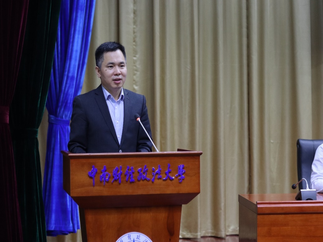 财政税务学院院长张克中首先向与会嘉宾和师生致以热烈的欢迎和衷心的感谢。他结合党的二十大报告指出,在当今的改革大潮下,如何助力实现“中国式现代化”是我们作为财经政法学子应该思考的问题。最后,他宣布第十八届“思源·共进”学术交流月正式开幕。
