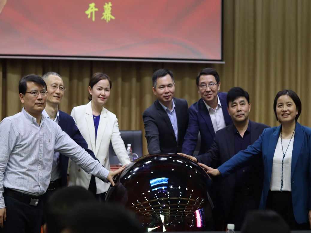在全场热烈的掌声中,与会领导一同上台,手扶启动仪式启动球,共同开启“思源·共进”大型学术交流月活动。
