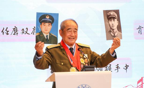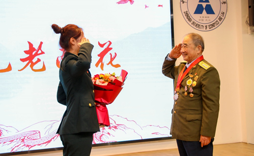 活动伊始,法学院党委副书记李司铎为毛兰成老师颁发聘书,将其聘任为法学院学生成长导师兼“青马班”校外辅导员。19岁那年,毛兰成老师光荣入伍,成为一名空军战士。他屡经考验,30多年军旅生涯沐浴党恩,不变的是一颗坚定不移跟党走的心。退休后,他作为武汉市退役军人事务局军休四中心“老兵宣讲团”成员,进机关、进企业、进学校、进社区、进部队、进革命老区开展革命传统教育、党史学习教育宣讲,激励孩子们、青年人永远听党话、跟党走。一身旧军装、一摞资料、一辆小电动车,这是80岁老党员毛兰成出门讲课不变的“装备”。今年,是他参加义务宣讲的第18个年头。截止目前,毛兰成老师已为30万余人作报告一千余场次,并先后获得全国离退休干部先进个人、全国国防教育年度人物、中国好人等多项荣誉称号。