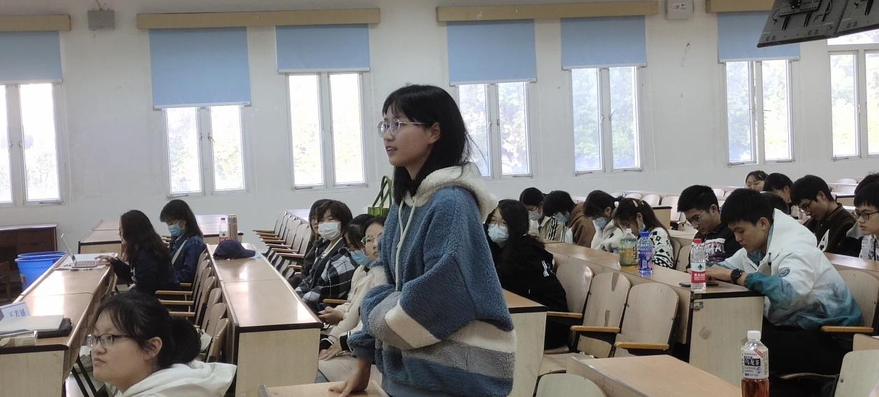 接下来是互动环节,同学们都积极踊跃参与提问,王若妍也耐心细致的为同学们解惑。其中,对于大家普遍关心的“如何与老师进行沟通”的问题,王若妍说到:应先明确是什么类型的老师,从专业老师和行业老师两个方面获得评价与建议。在沟通中,应该勇于说实话,明确自己的想法。