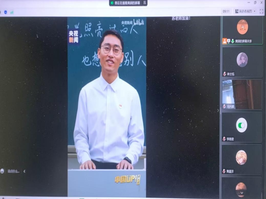 首先,团支书用视频向同学们展示了一位我们身边的“新时代好青年”,同时也是我们的校友——苏正民师兄。通过视频,我们了解到苏正民在本科毕业之际,主动放弃了去大城市就业的机会,义无反顾地投身于家乡大凉山的公益教育事业。“一路上,同学们,老师们都那么关心我、帮助我,现在我也想通过自己的知识和力量去帮助像我一样的孩子们摆脱贫困、无知和自卑。”这是苏正民师兄的肺腑之言,同时也展现出了新时代青年的高尚品质。借此机会,团支书号召同学们学习苏正民师兄无私奉献和坚忍不拔的高尚品格。