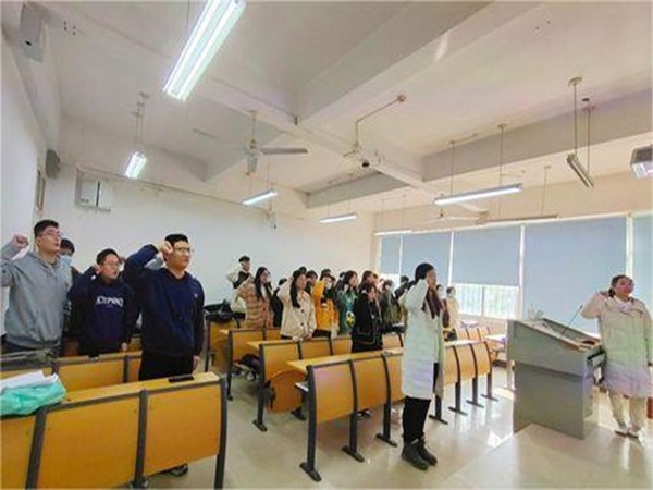 会议伊始,全体到会成员起立,奏唱国歌。随后,李家君同志作为领誓人,带领全体党员重温入党誓词。铿锵有力的誓词,震撼着在场的每一位党员,神圣而豪迈,体现着党员同志们对中国共产党的无限忠诚。