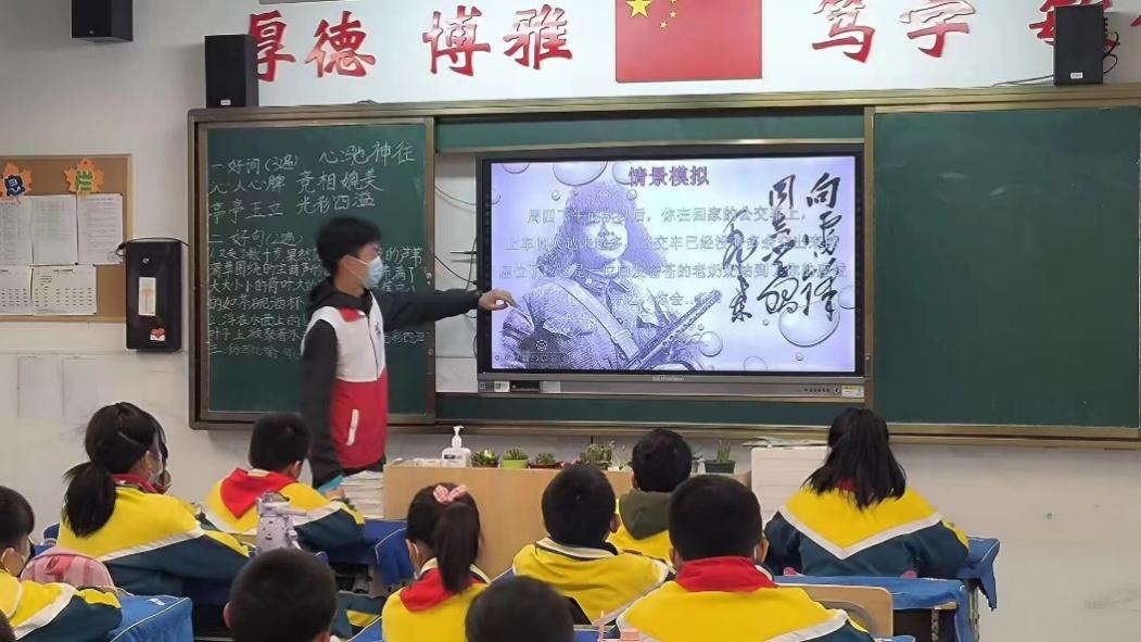 接下来,志愿者们密切配合,让同学们与“雷锋叔叔”来了一场跨越时空的对话。同学们怀着激动的心情,兴奋地向“雷锋叔叔”发问,深入了解雷锋同志所处的时代背景,更加深刻地体会雷锋精神的伟大。最后,志愿者给同学们总结分析雷锋精神,带领同学们一起合唱歌曲《雷锋》。在一阵阵充满稚气的歌声中,本次学习雷锋月活动圆满结束。