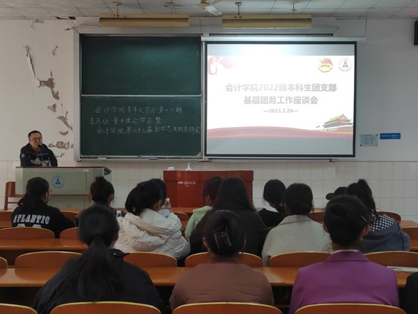 新闻网讯(通讯员 赵达骋 学生通讯员 许铭凌)3月26日中午,会计学院于首义校区文瀚楼302教室召开2022级本科生团支部基层团务工作座谈会,会计学院团委书记赵达骋,本科2022级辅导员黎玥、分团委组织部代表出席会议。