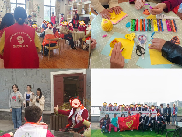 第二项活动,开展“支部进社区,春‘锋’暖人心”团学志愿服务。在集体理论学习结束后,劳保2101团支部联合公共管理学院志愿者协会以及金融学院志愿者协会,前往武昌区水果湖街青鱼嘴社区残疾人阳光家园服务中心开展了“支部进社区,春‘锋’暖人心”团学志愿服务。同学们为青鱼嘴阳光家园的残障人士赠送了礼物,帮助社区完成了日常清洁工作,耐心陪伴残障人士做手工,普及了电信诈骗的常见情形,并准备了文艺汇演节目,收获了阳光家园的“大朋友”们的会心笑容。