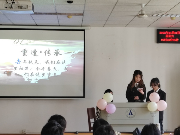 大会第一项,学员代表发言。各部门学员代表围绕“重逢·传承”这一主题,讲述了自己在部门工作中由青涩逐渐走向成熟的故事。在一件件任务、一次次志愿服务中渐渐成长的志愿者们已经能够独当一面,在未来,他们也会将阳光洒向更广阔的地方,将这份温暖继续传递下去。