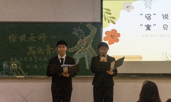 新闻网讯(学生通讯员 杨晟熙 摄影 陈子晗 王振宇)为促进寝室精神文明建设,充分发挥同学们的想象力和创造力,在校园中营造健康、活泼、友爱的寝室氛围,金融学院于4月2日下午2:30在首义校区30号楼204教室开展了第九届寝室风采大赛。金融学院团委副书记李奥老师出席本次活动并担任评委,2022级辅导员胡阳老师带来亲切寄语,预祝活动取得圆满成功。