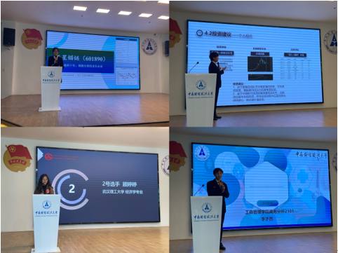 本次大赛分为初赛、复赛和决赛三个阶段,从理论与实践两方面对选手进行考核,来自各兄弟高校、兄弟学院的105名选手报名参与,在经过激烈而紧张的层层选拔后,我校金融学院金融学类2204周泽宇、会计学院CPAC2101韩骏腾、工商管理学院商务分析2101李子昂、金融学院投资2102魏靖懿和来自武汉理工大学经济学大类22级本科生顾婷婷五位选手脱颖而出,成功入围决赛。