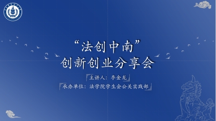 新闻网讯 (通讯员 瞿玉杰 学生通讯员 穆楚歌 宋若尘 马文) 4月6日下午,由法学院学生会公关实践部承办的“法创中南”创新创业分享会在文澜210教室顺利开展。本次分享会由公共管理学院2021级硕士研究生李金龙担任主讲人。李金龙同学曾获评“全国大学生创业英雄百强”“教育部大学生就业创业人物”“团中央大学生双创先锋”等称号,其创业项目获得第三届“建行杯”全国财经院校创新创业大赛特等奖、第五届中国“互联网+”大学生创新创业大赛湖北省金奖等70余项荣誉。